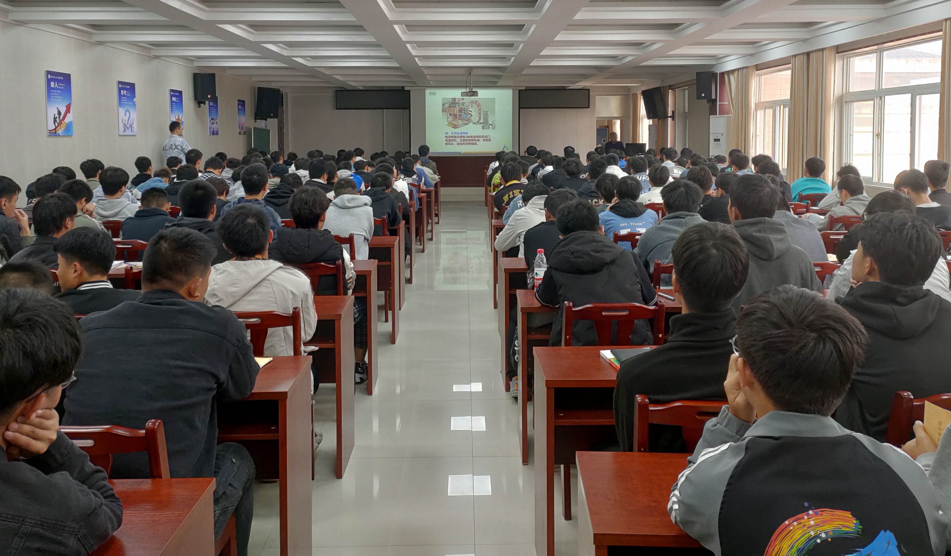 隨后,陳健總經濟師在校內開展了為期三天的學術交流,進行了“焊接技術發展”、“先進焊接自動化裝備進展”專題講座,學院焊接自動化、工業機器人及相關專業師生近200人聆聽講座。同時,為做好高職院校的焊接科研工作,提高教師的業務能力和水平,陳健總經濟師與機械專業的教師開展了座談,針對與專業建設相關的科研和教學問題進行交流指導,得到了學院師生的廣泛好評。