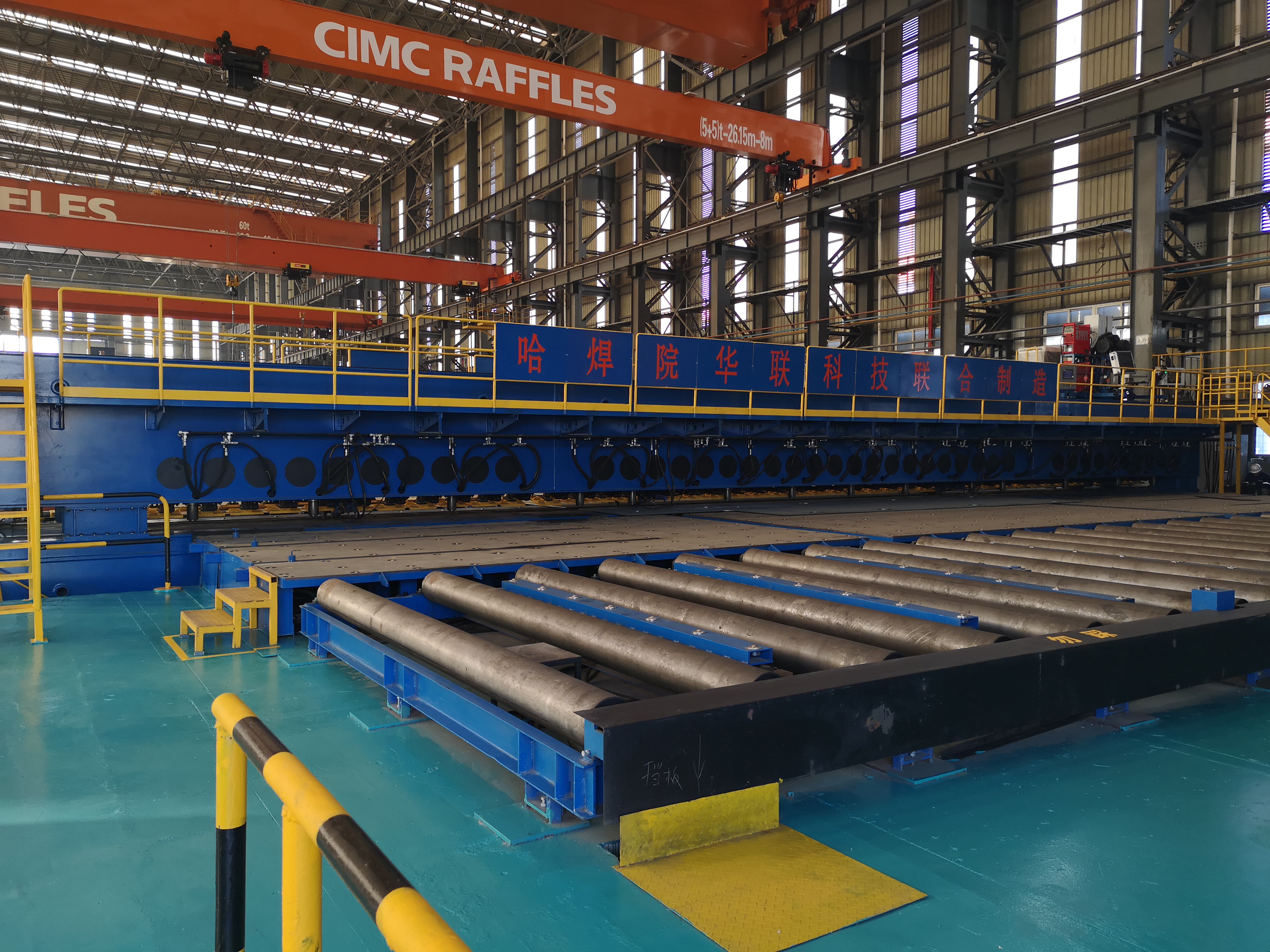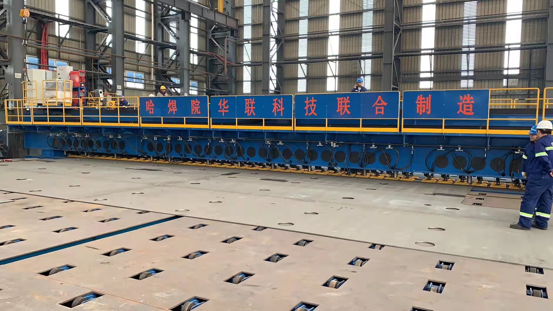 哈焊院自主研發的國產首條船舶平面分段大型拼板激光-電弧復合焊接生產線順利投產