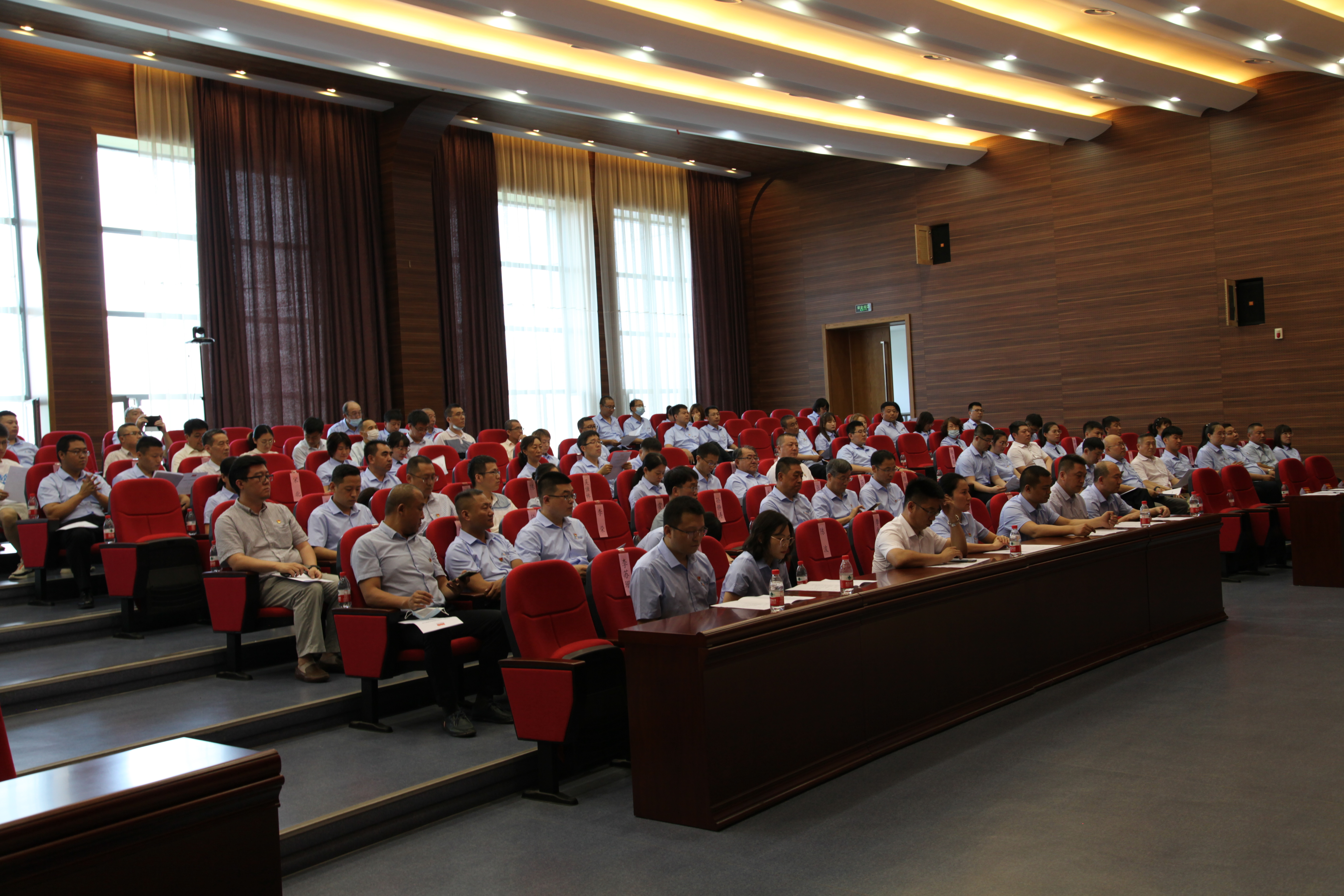 哈焊院領導班子成員、中層干部、受表彰人員及全體黨員參加會議,哈焊華通公司經理層、全體黨員在常州視頻分會場參會。