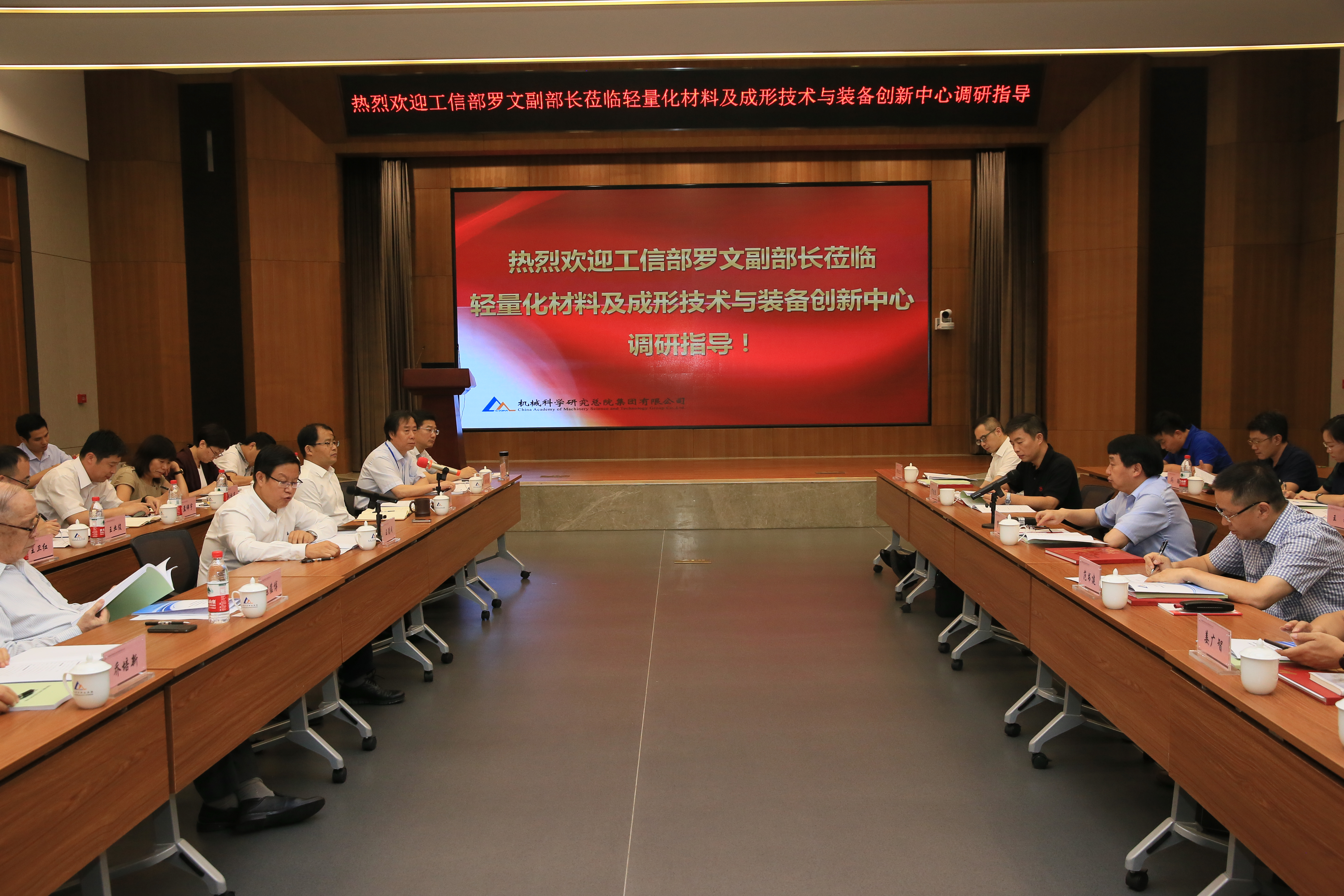 王德成董事長(zhǎng)在致辭中對(duì)羅文副部長(zhǎng)一行到機(jī)械總院集團(tuán)調(diào)研表示熱烈歡迎,介紹了輕量化創(chuàng)新中心建設(shè)的最新進(jìn)展和舉措,并表示將凝聚集團(tuán)資源建設(shè)好輕量化創(chuàng)新中心,發(fā)揮公益類科技型中央企業(yè)的國家和行業(yè)使命,助力制造強(qiáng)國建設(shè)。單忠德副總經(jīng)理匯報(bào)了“國家輕量化材料及成形技術(shù)與裝備創(chuàng)新中心”建設(shè)方案。